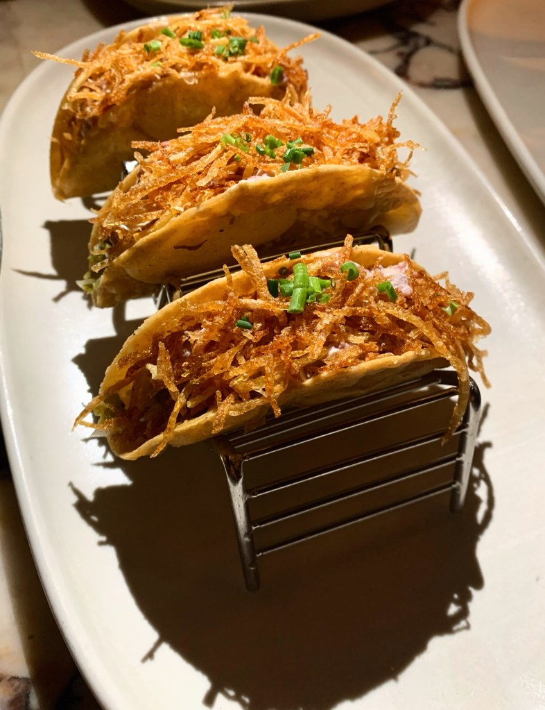This steak tartare taco was delicious and had a really unique combination of ingredients with egg jam, mountain pepper leaf and paps al hilo (direct translation: shoe string fries) to top off the taco. Every bite was delicious – the steak was tender and seaoning perfectly balanced, the extra crunch from the crispy fries enhanced the overall texture.