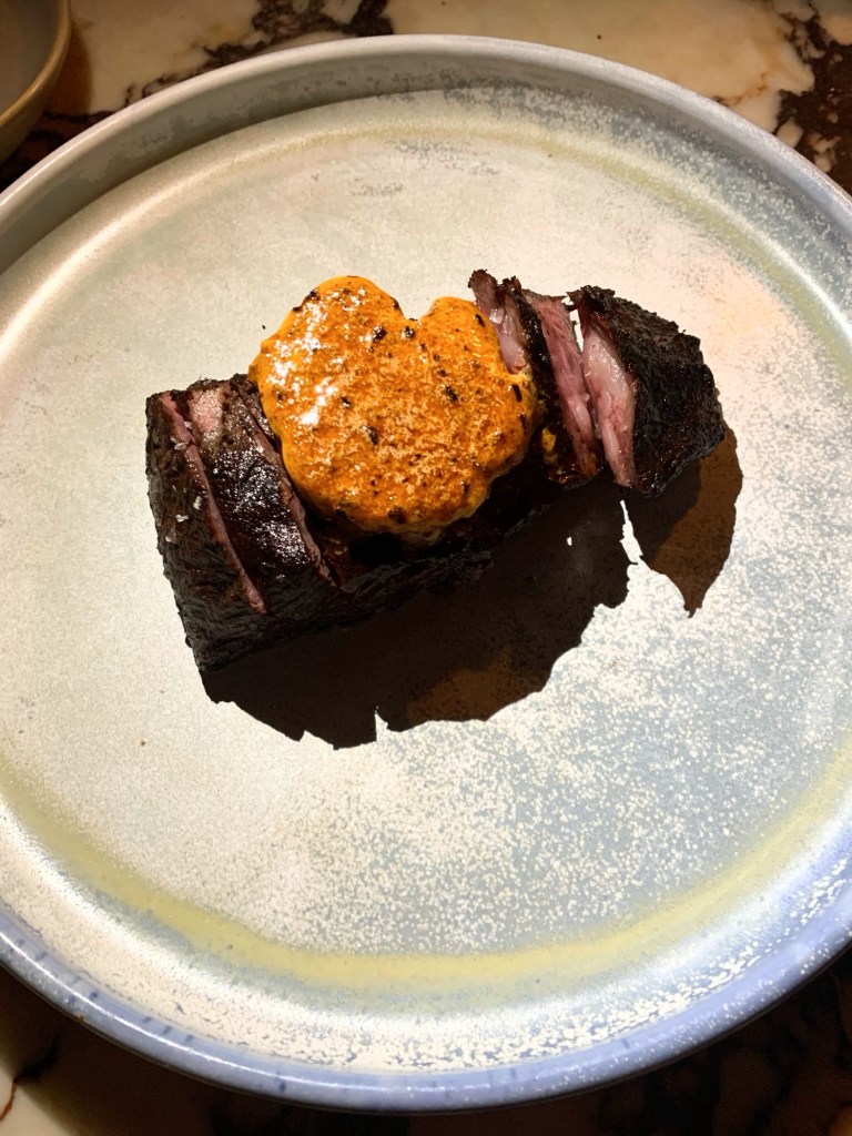 Simplicity is best when it comes to steak. If you don’t want to splurge $284 on 1kg wagyu rib-eye from the menu then this may be a better (at least in affordability) option. This steak was cooked to a perfect medium rare and served with black garlic and chipotle butter – yep that’s it, simple yet melt in your mouth delicious. The meat is so tender and soft – chef’s kiss x 100!