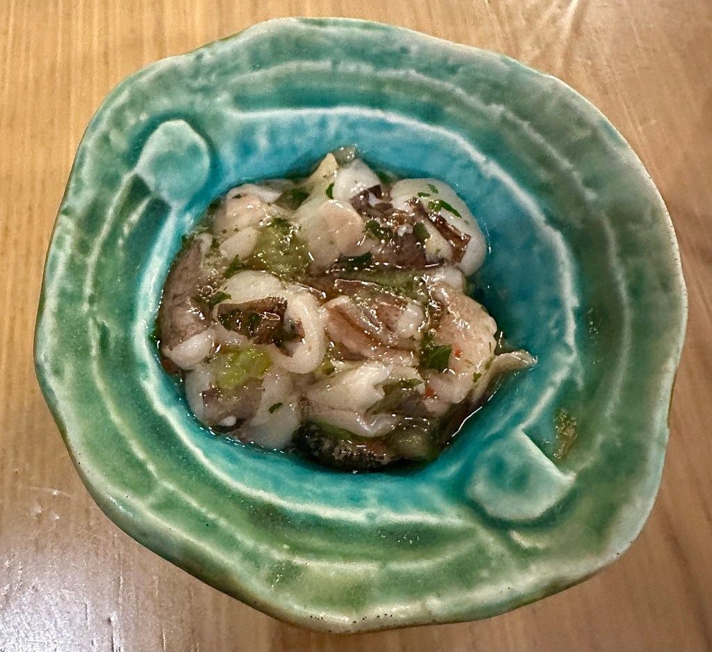 Takowasa is a popular Japanese izakaya appetiser made from raw or lightly cooked octopus that is chopped and marinated in spicy wasabi-based sauce, the flavours are vibrant and bold with the heat from the wasabi delicately balancing the chewy octopus. It’s a refreshing dish to open the palate if you dare to try.